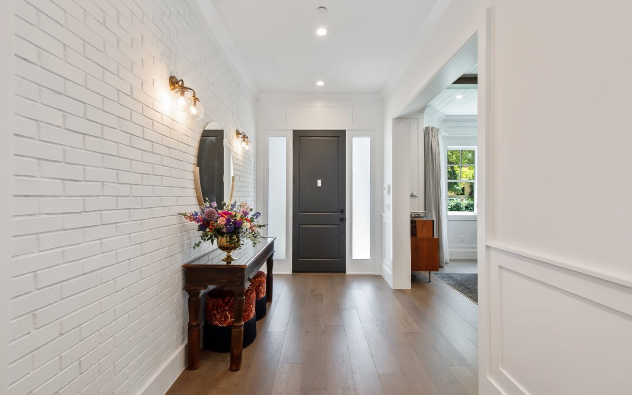 Elegant and gated, this Sherman Oaks home is bursting with amenities and style, impeccably maintained with designer touches throughout. With 5 ensuite bedrooms and 6 total bathrooms, this custom-built residence is situated on a charming, tree-lined street. Step into a two-story entryway where light streams in through ample windows. The great room has a stunning chefs kitchen, dining area, and family room with gorgeous built-ins. Accordion glass doors open to an expansive, private backyard with a covered patio, pool, spa, and rolling lawn. A flexible space downstairs can be used as a playroom, office or home theater. Upstairs is a lounge and a primary suite with a vaulted ceiling, private balcony deck, fireplace, dual walk-in closets, and a spa-like bathroom with a soaking tub and glass-enclosed shower. The highly coveted neighborhood lies south of Ventura Boulevard, moments from great restaurants, coffee shops, and shopping.